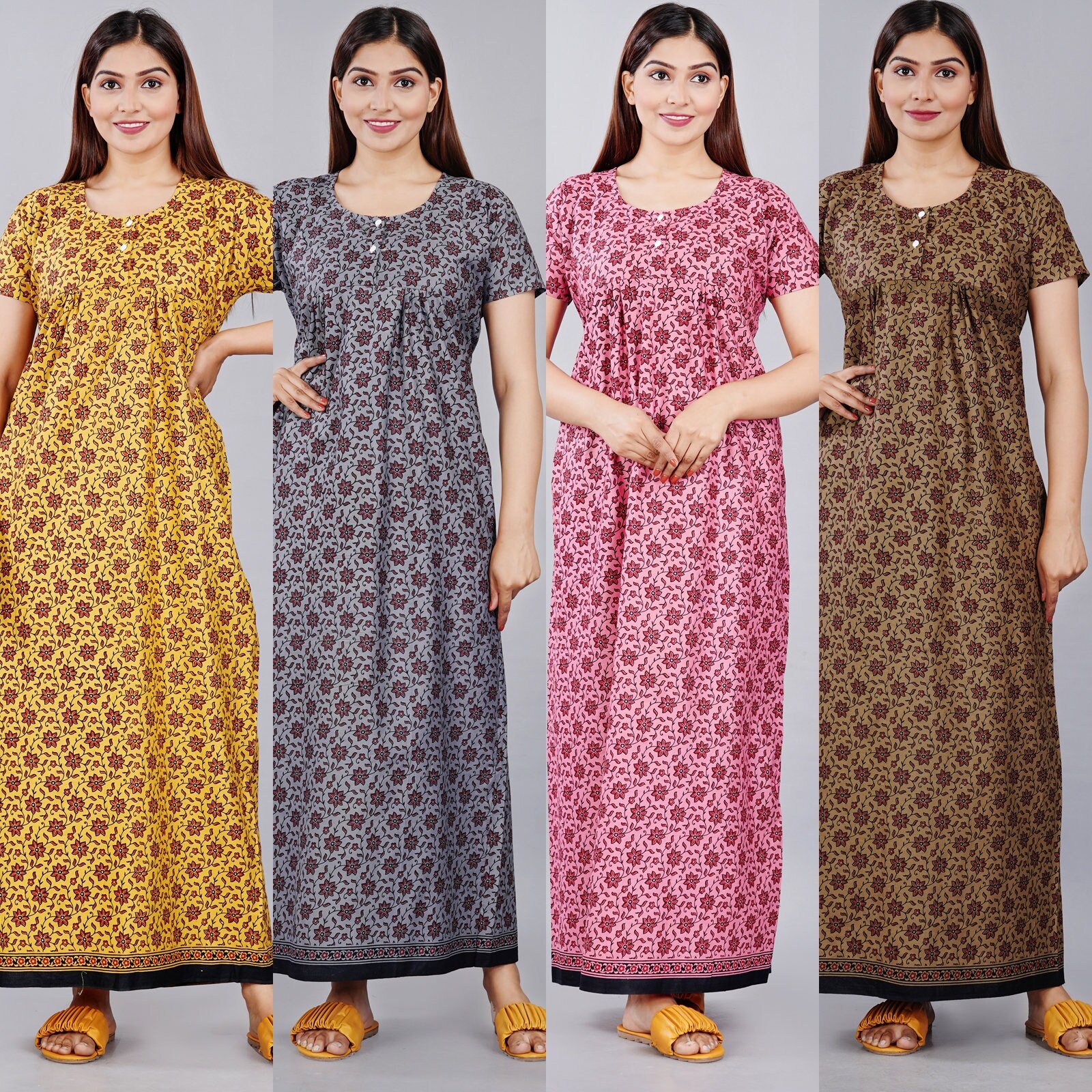Shoppio India Women S Jaipuri Printed Soft 100 Cotton Indian Nighty For Women Nightgowns For Ladies Cotton Nighties Xl Night Dress Pack Of 4 Multicolor